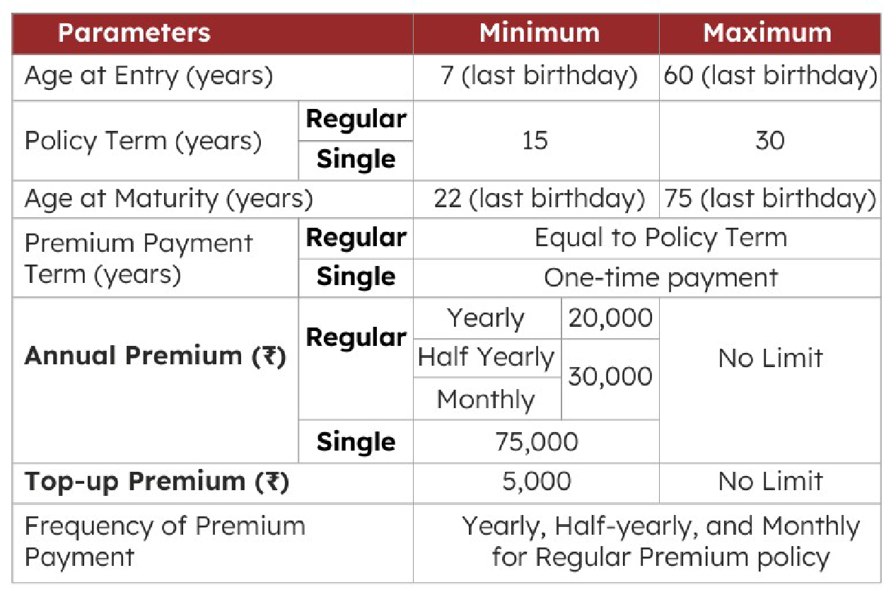 1 For eligibility criteria: All the references to age are based on age last birthday. Risk commencement date will be the same as Policy commencement date for all lives including minor lives
